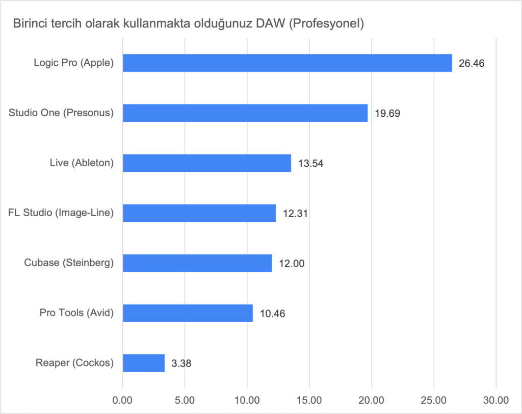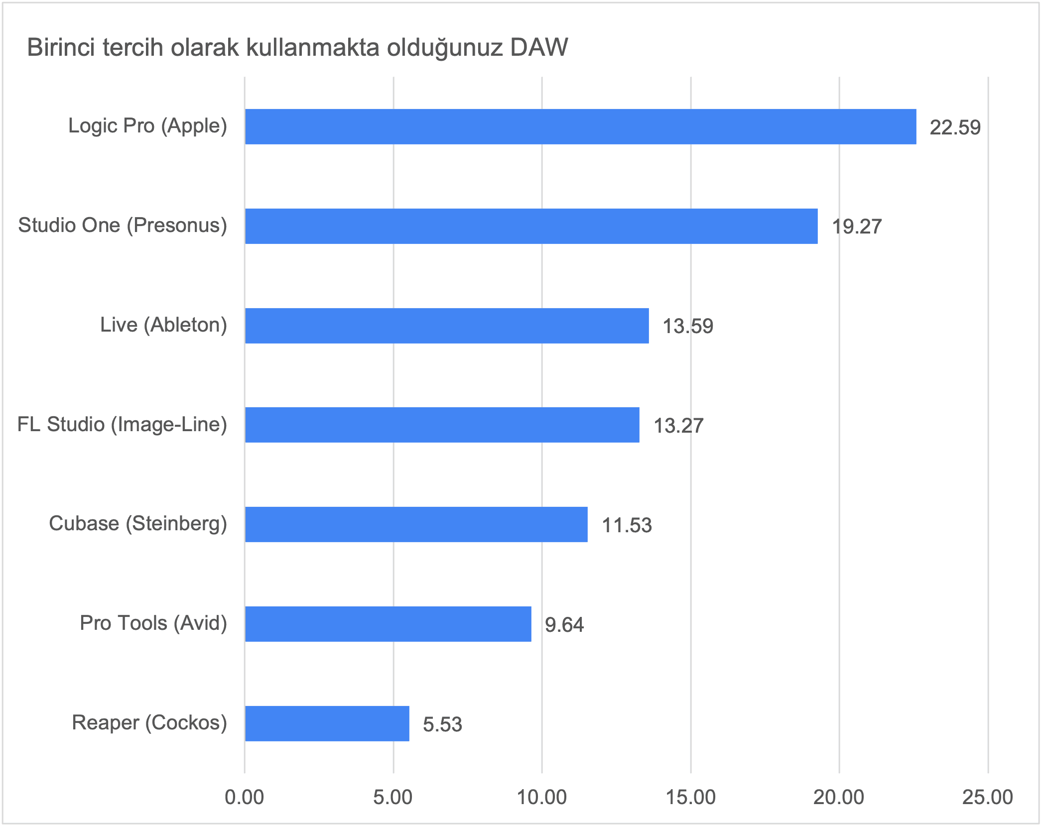 Soru: “Birinci tercih olarak kullanmakta olduğunuz DAW”